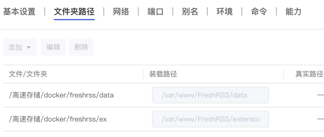 - freshrss会有些配置数据和缓存数据,需要设置下目录映射