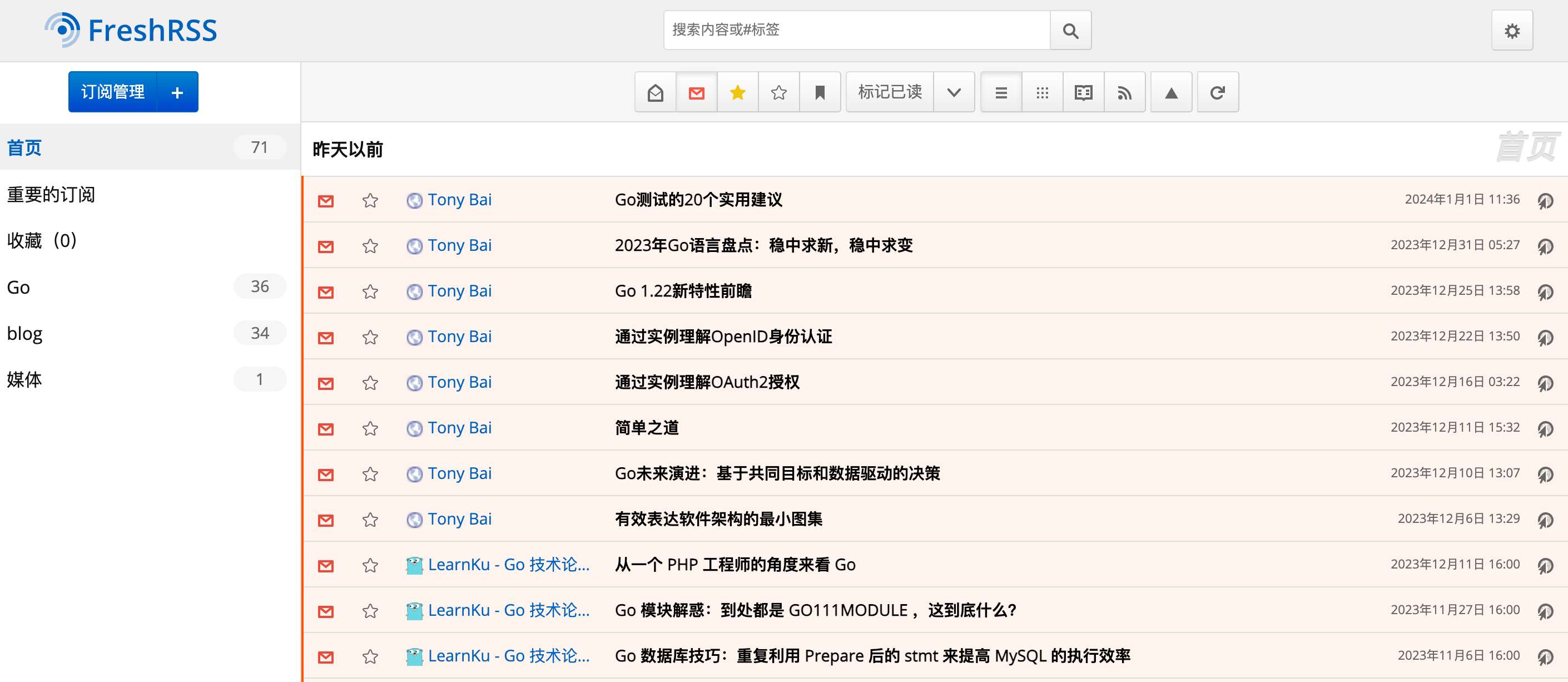主要就是阅读和管理订阅,在rsshub浏览器里添加订阅后,联动这里就可以直接查看订阅,不过这个是网页端,移动端的话还需要一个rss阅读器,支持freshrss服务的就行,这里用的是feedme 只支持安卓端,ios端可以用reader。