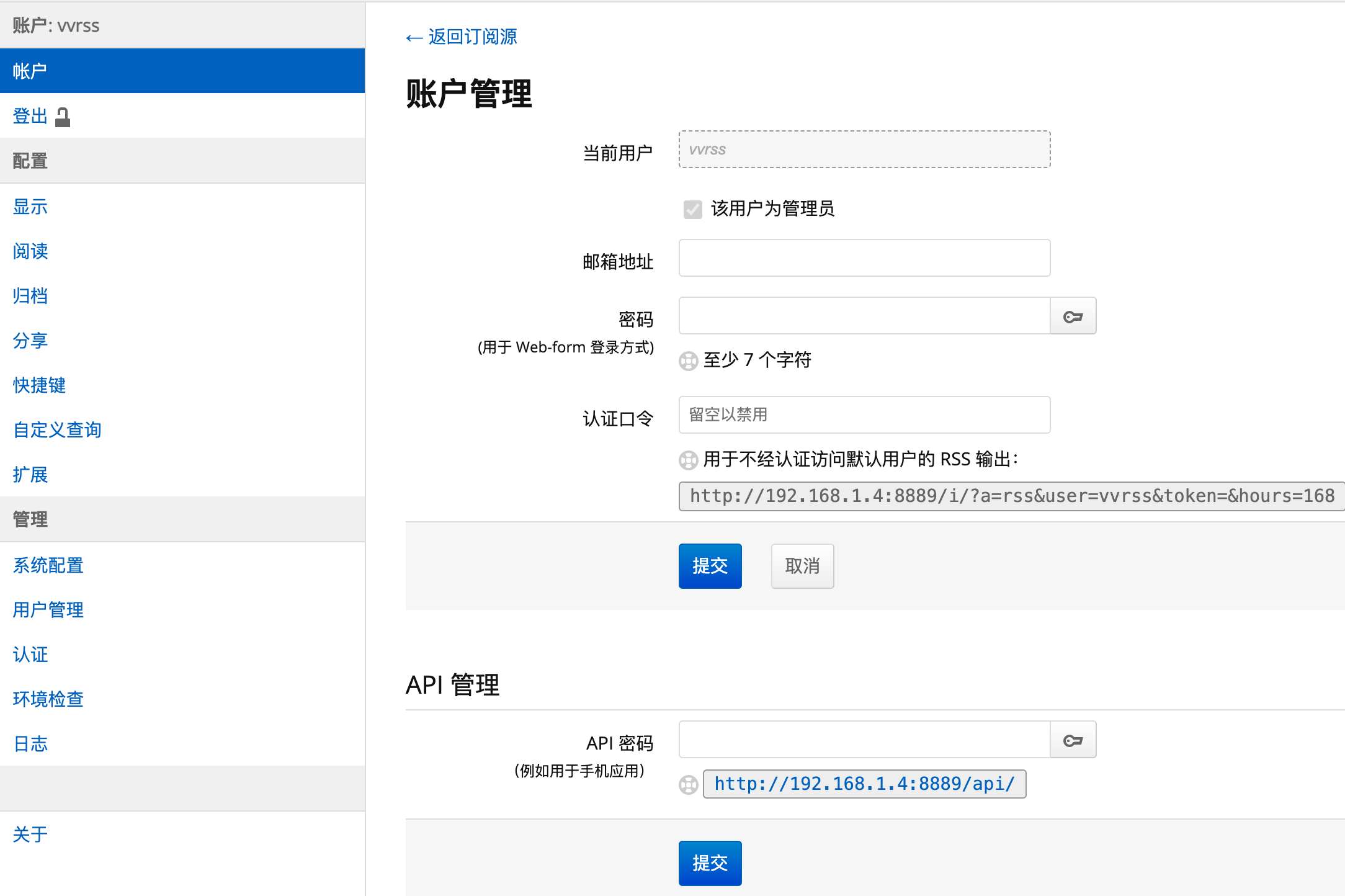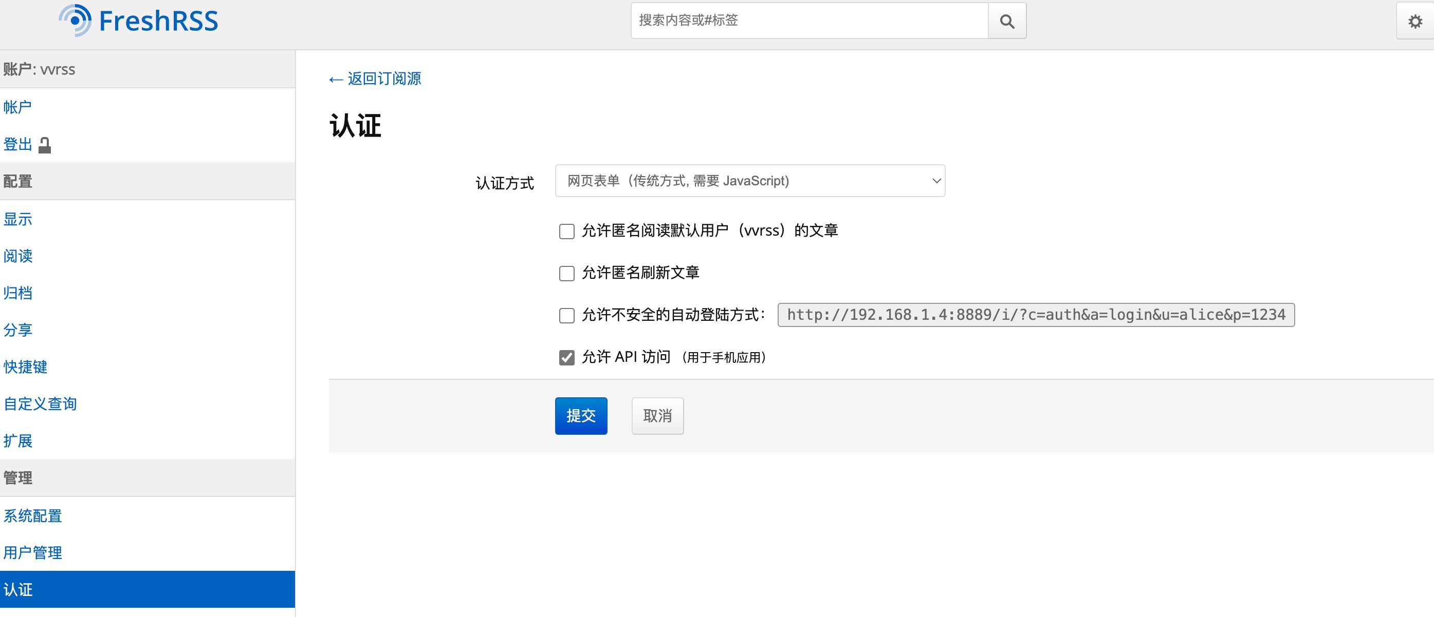 直接github下载相应apk安装打开选FreshRss,会让输入freshrss api地址和账号密码,api地址需要在freshrss 开启允许api访问,api是服务地址 ip+端口/api/greader.php,比如我这个是http://192.168.1.4:8889/api/greader.php