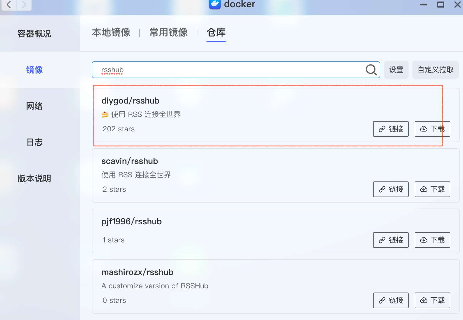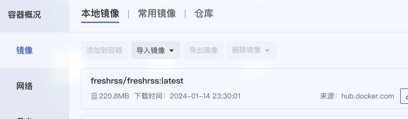 - 同样先下载freshrss镜像